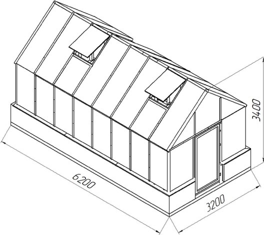 Верхняя часть теплицы выполнена из стальной профильной трубы прямоугольного сечения. Применены два уровня защиты металла от коррозии: цинк + полимерное покрытие. Металлическая часть конструкции теплицы собирается из крупных узлов и имеет форточки, оснащённые лифтами. Нижняя часть теплицы выполнена из кирпича премиального класса.